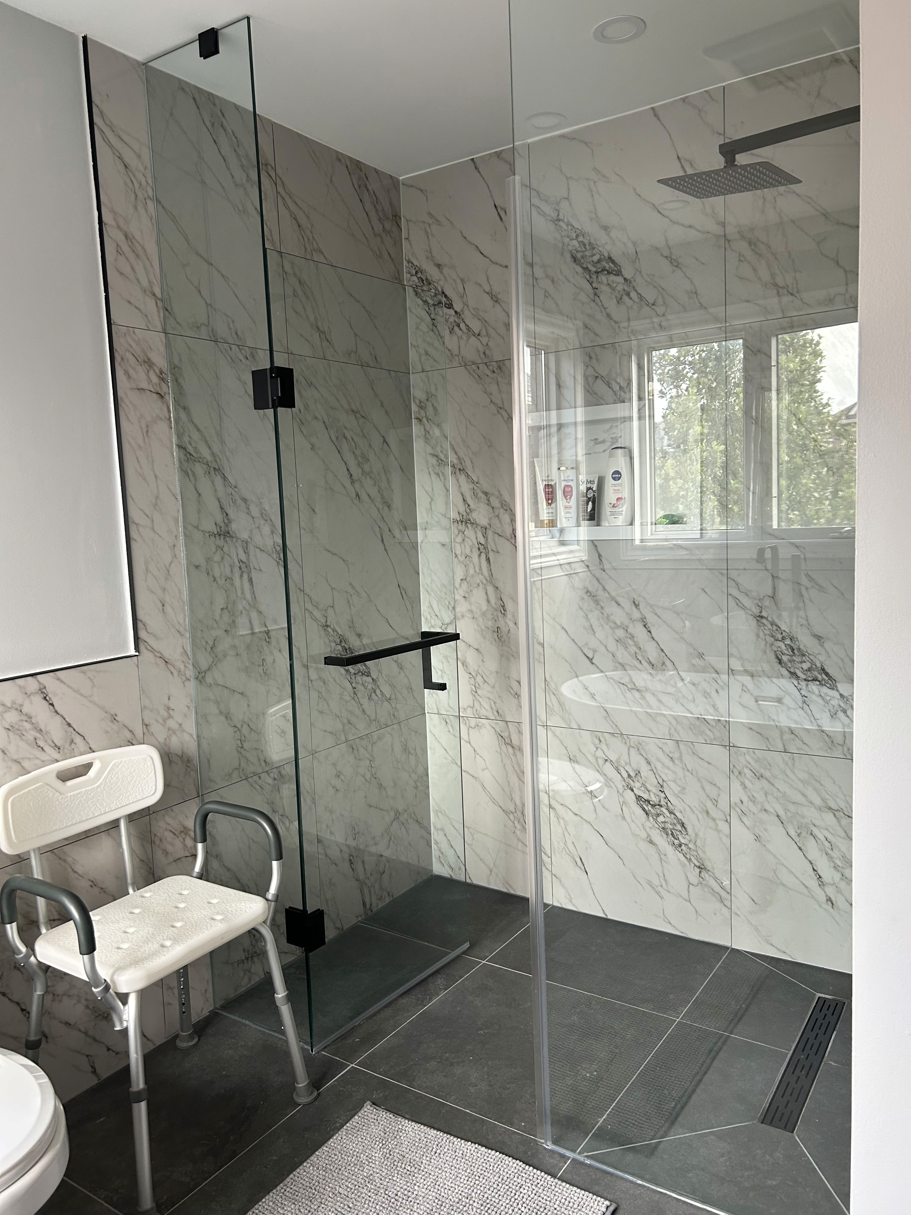 "Maurice and crew did an amazing job on our bathroom reno. It exceeded our expectations and made it possible for me to safely shower on my own. Having had two strokes, this reno improved my quality of life. We’re grateful for the care and professionalism from the crew at Maurice Bath Reno and recommend them for your reno needs."